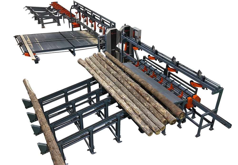 FBK D300 İkiz Şerit Bıçkı, Tomrukların iki dikey kenarını 450 mm. çapa kadar etkin bir şekilde çıkarmak için ince uçlu bıçaklar kullanır.